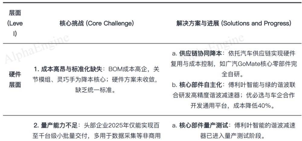 当前,产业正通过供应链协同、核心部件自主化、大模型创新及开源生态构建等方式,加速攻克上述难题,推动商业化落地。