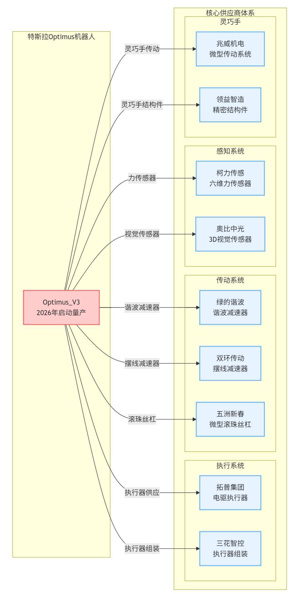 以下是 AlphaEngine 整理好的特斯拉机器人核心供应链图谱: