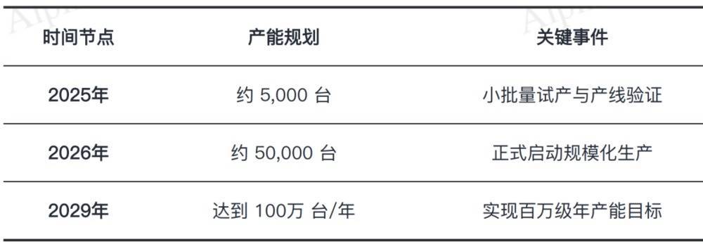 特斯拉为 Optimus 机器人设定了极具挑战性的产能爬坡目标,旨在通过复用汽车领域的规模化制造经验,快速实现百万级年产能。
