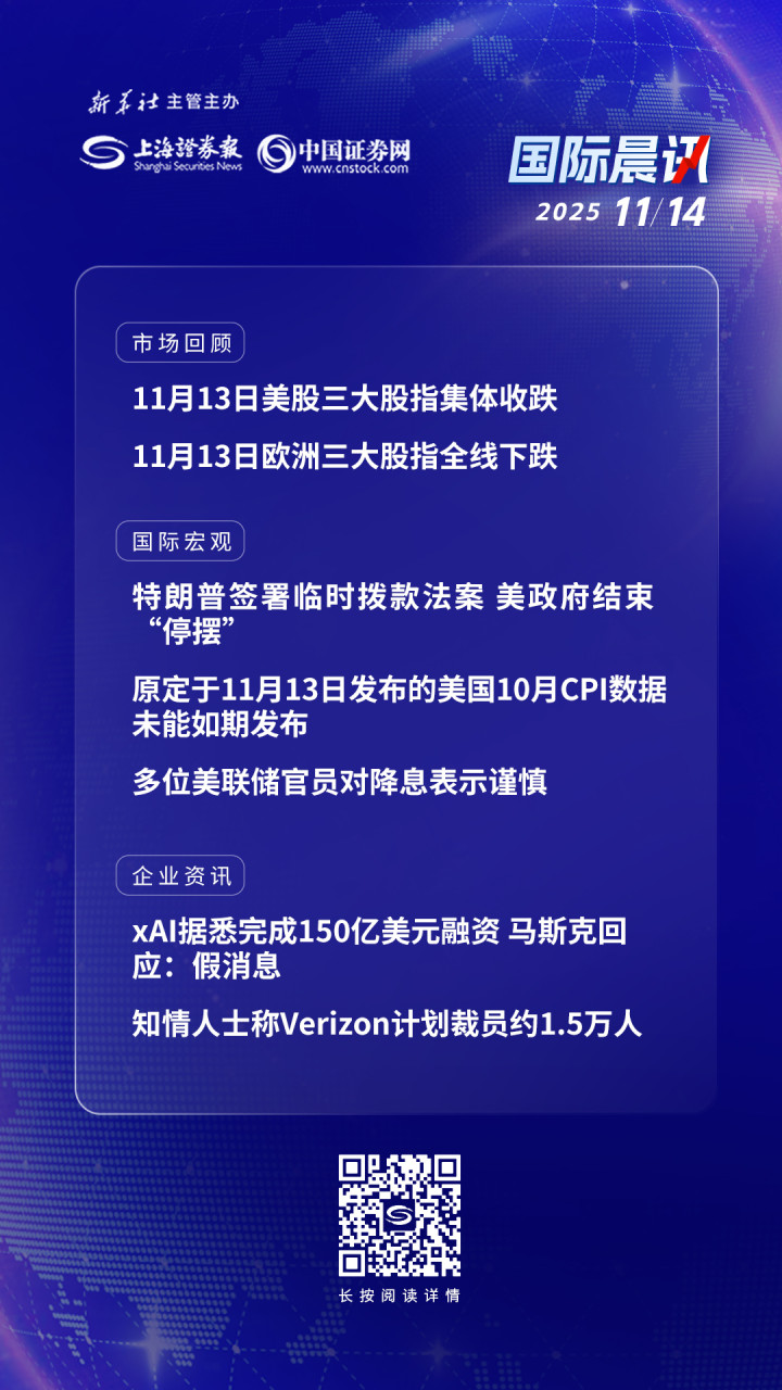原定于11月13日发布的美国10月CPI数据未能如期发布。白宫经济顾问哈塞特13日表示,政府将如期发布10月份的关键就业报告,但由于长达数周的联邦政府停摆,报告中将不包括失业率数据。