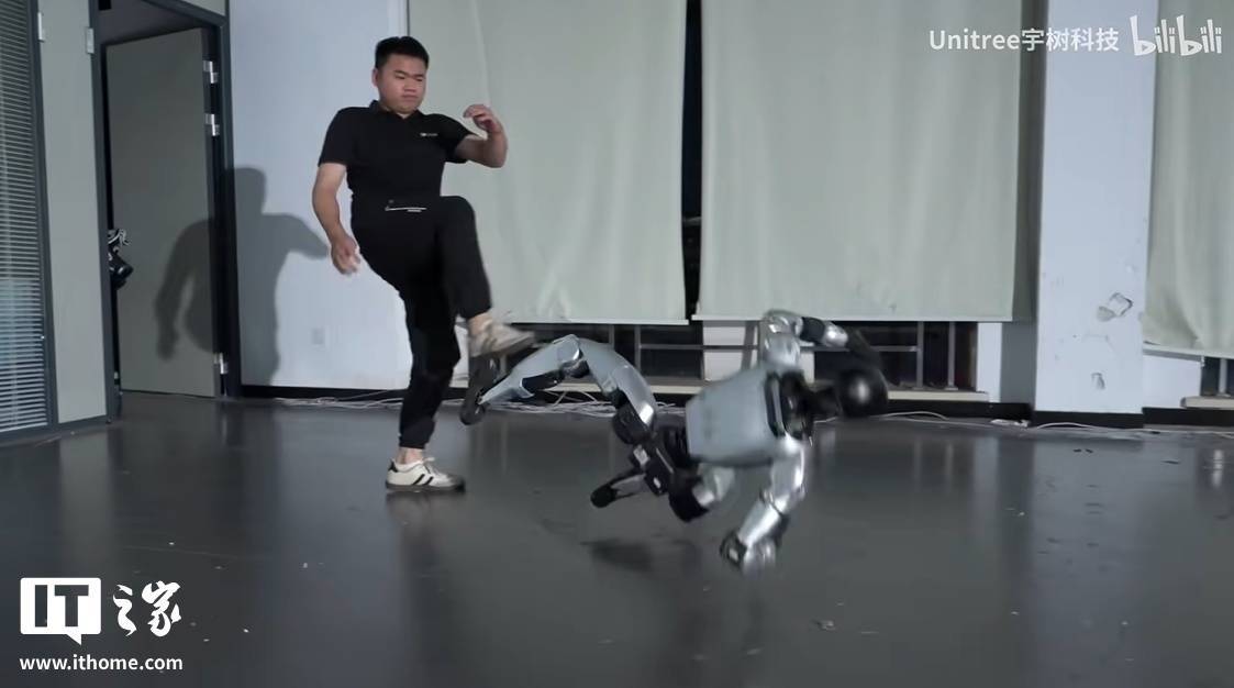 在官方发布的视频中,多位成年男子对 G1 进行了“围殴”。G1 遭遇了飞踢、横踹,并被工作人员用椅子推倒。在任意攻击倒地后,G1 都能够迅速起身。在视频末尾,G1 还展现了连续空翻的能力。
