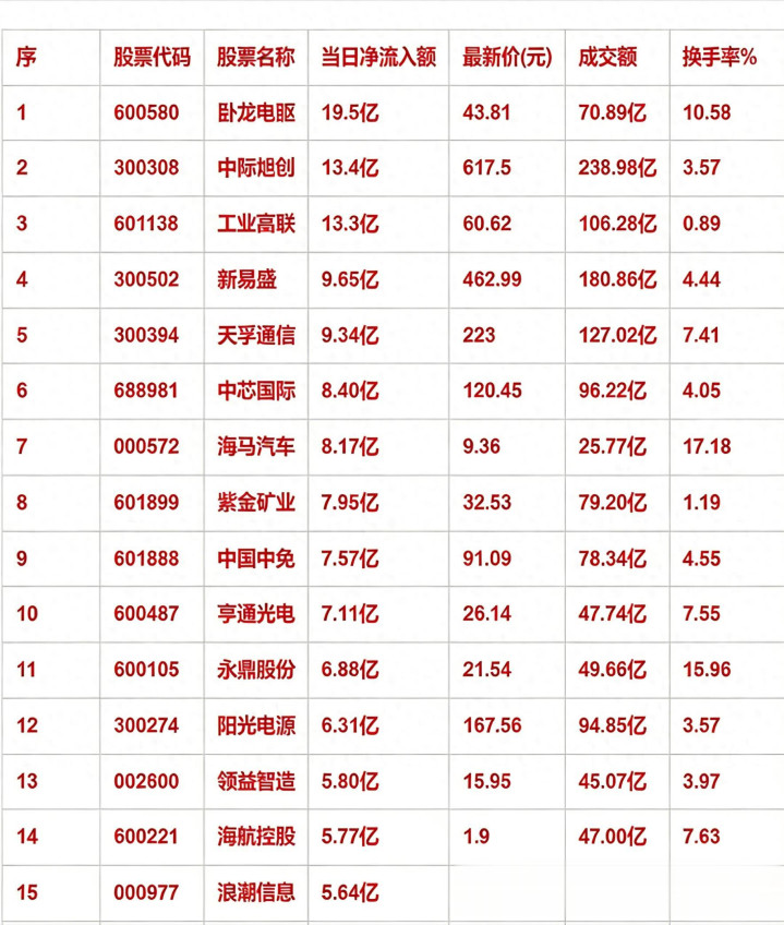 当日净流入额